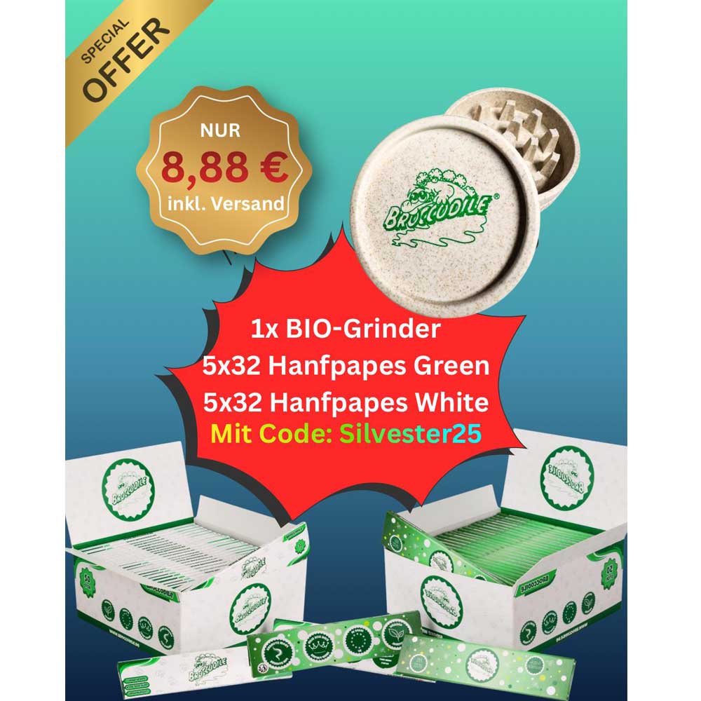 Broccodile Starter Bundle – Bio Grinder und 320 Blatt Hemp Long-Papers